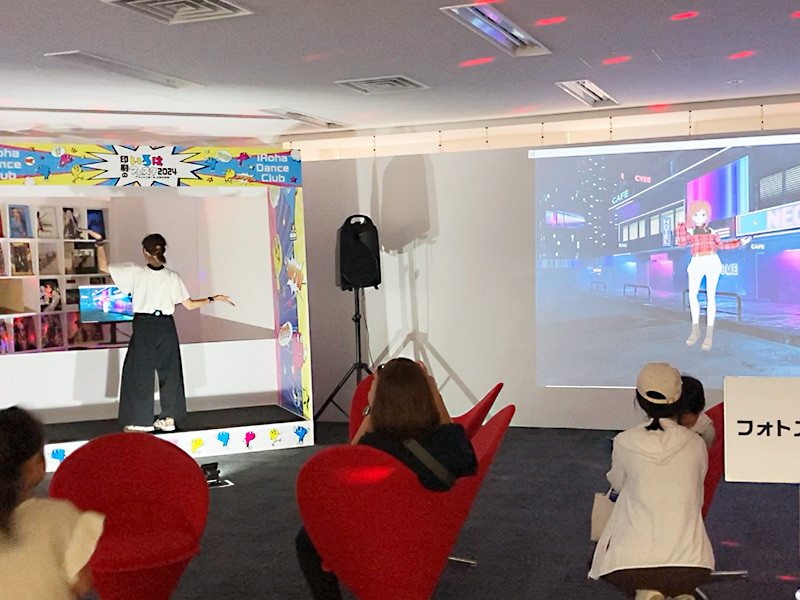 手足にセンサーをつけると、画面上のアバターとリンクするV-tuber体験ができるエリアを運営しました!