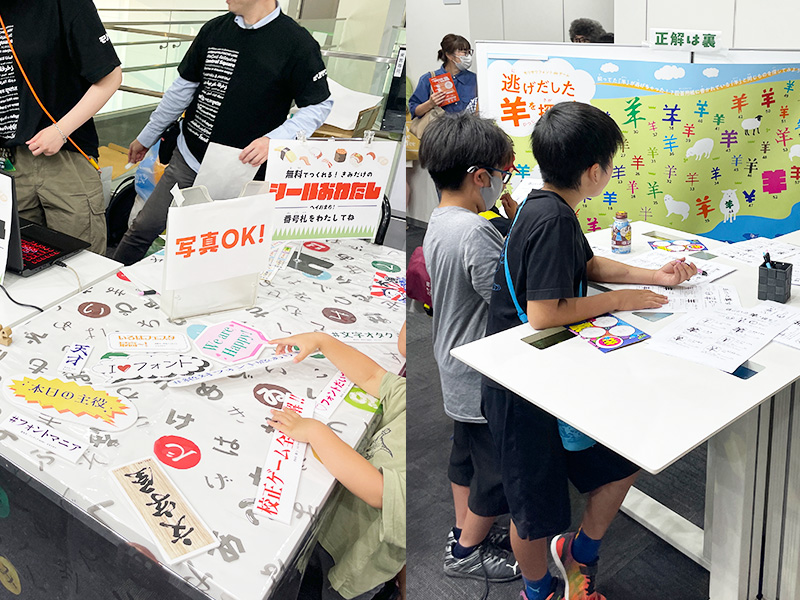 フォントを取り扱っている「モリサワ」さんのブースでは、実際にお仕事でも行う「校正体験」や、いろんなフォントの中から指定のフォントを探したり、自分の名前シールを作ったりと、普段あまり意識することのない「フォント」のデザインにみなさん興味津々に楽しまれていました。