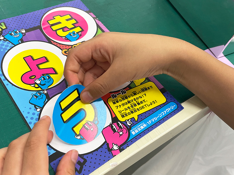 実際に入社試験でも行う、グラデーションになっている色玉を正確に並べるゲームコーナー!