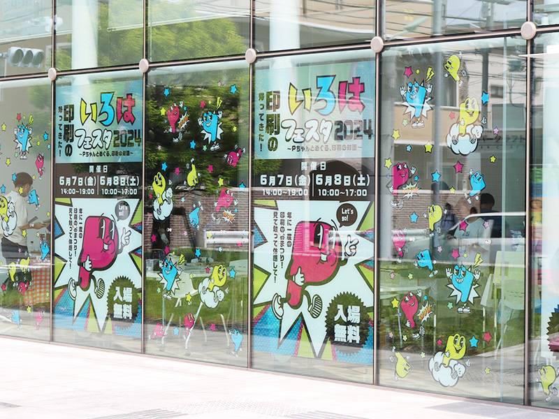 『いろはフェスタ』では企画や運営はもちろん、制作物のデザインやイベントを盛り上げる、風船やのぼり、ガラス装飾など、様々な販促物なども全て金羊社で制作しました!