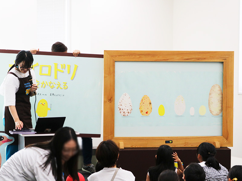 イベントに参加したお子さんたちは巨大な紙芝居に目を輝かせたり、参加型企画の「WORLDLIBRARY Tour」では大きな声で質問に答えたりと、大盛り上がりのイベントとなりました。