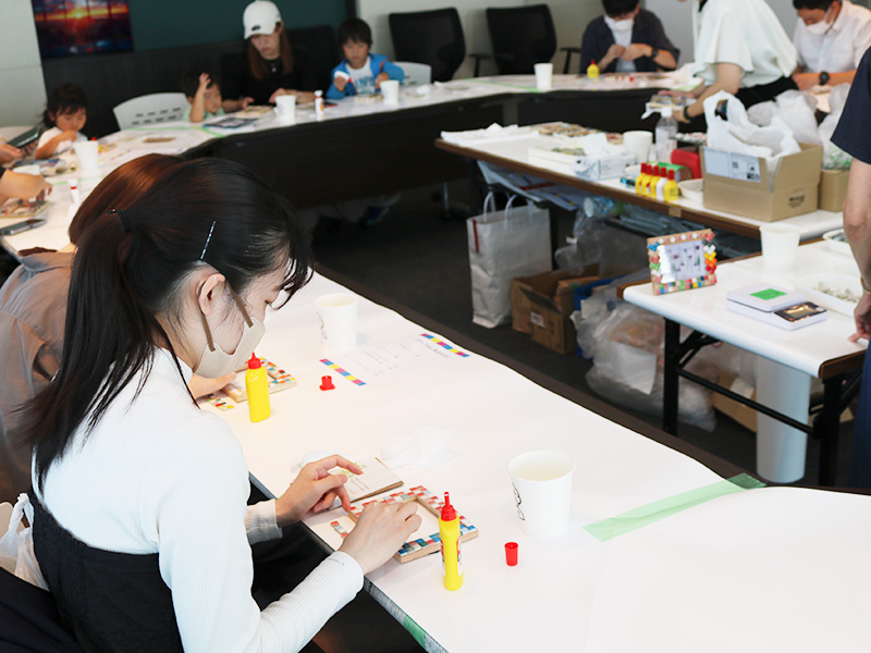 色とりどりのタイルを自由に組み合わせて、大人からお子さんまでみなさん熱心に制作していたのがとても印象的でした。