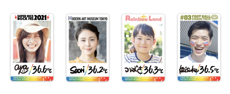 Thermo Selfie は検温と共に撮影を行い、写真をフォトカードとしてその場で印刷。正常体温を証明できる顔写真つき入場パスになると同時に、元気にその場を迎えられた思い出にします。フェス、遊園地、美術館、スポーツ観戦など様々な場所での導入を目指します。カードのデザインは表裏ともにカスタマイズ可能で、カードに事前に印刷することでランダムにクーポンの発行や、キャストによるサプライズのサインやメッセージを入れることも可能です。検温という事務的な作業をエンターテインメントへと昇華する、今後のイベント入場や入店のニュースタンダードとなるサービスを目指します。