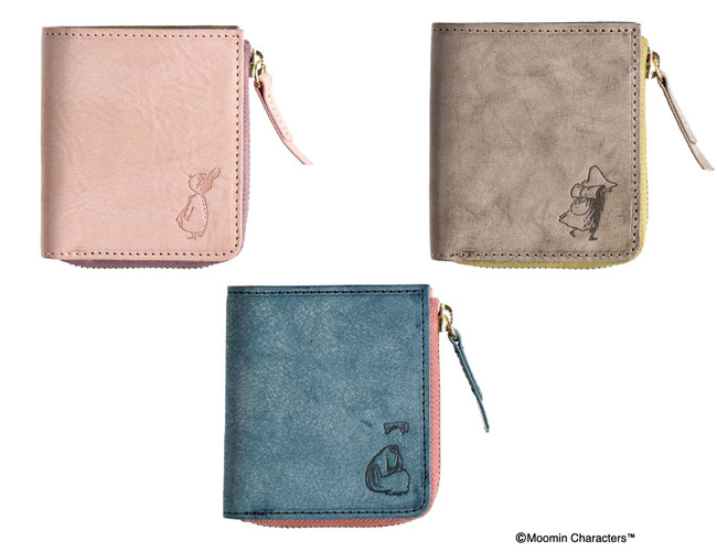 商品名:MSP本革バイカラーハーフウォレット リトルミイ ピンク/スナフキン グレージュ/ニンニ ネイビー(コケモモの小道店限定商品)