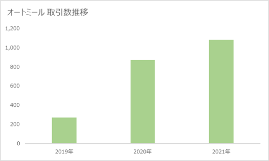 2019年と比較すると、約4倍にも取引数が増えました。オートミールとはオーツ麦を脱穀して調理しやすく加工した食品で、低カロリーながらカルシウムや鉄分、ミネラルなどの栄養が豊富のため健康的な食事として人気です。