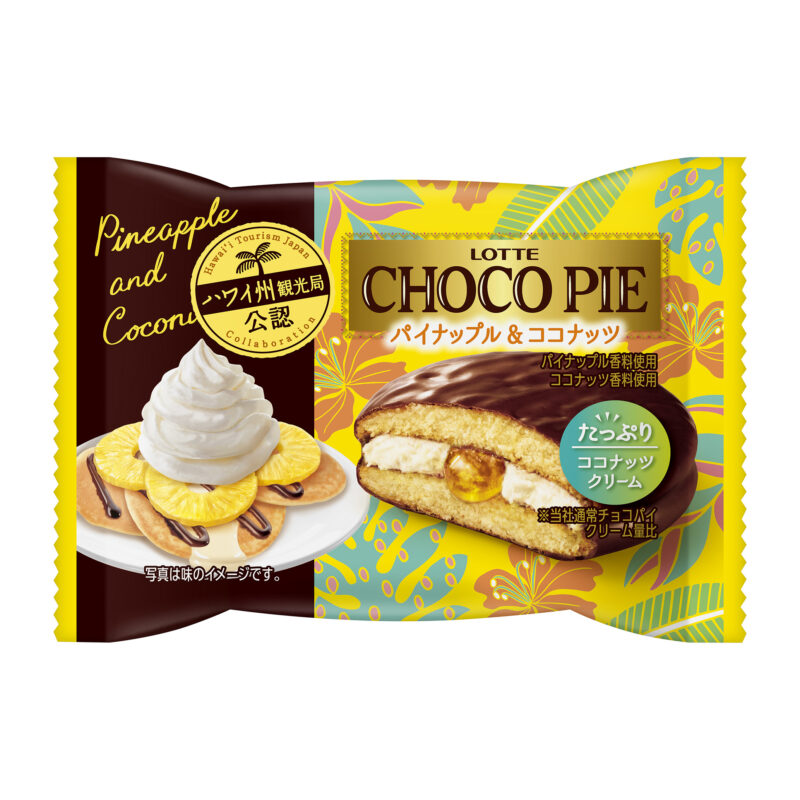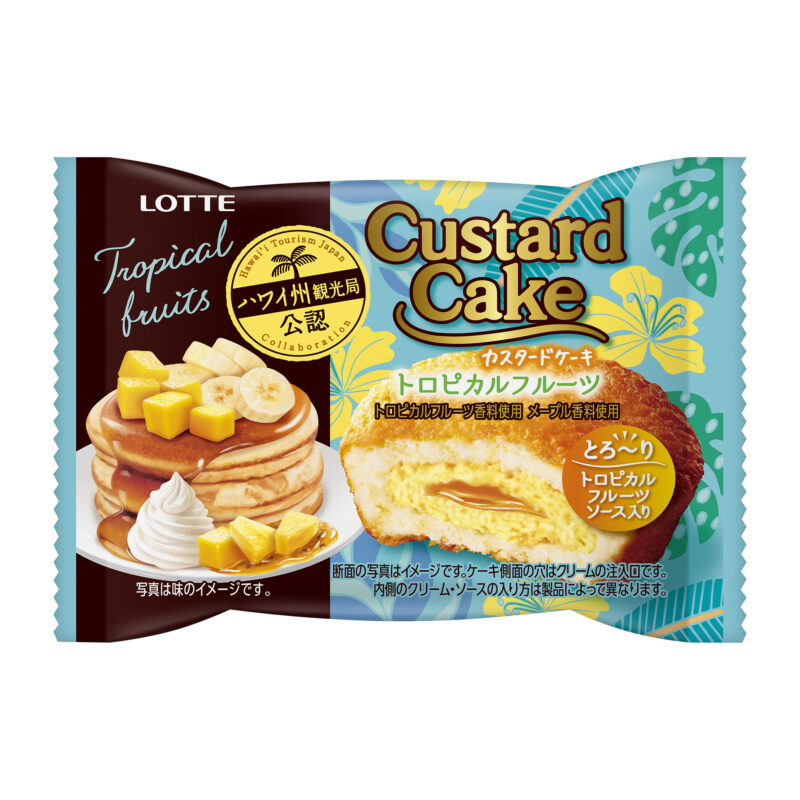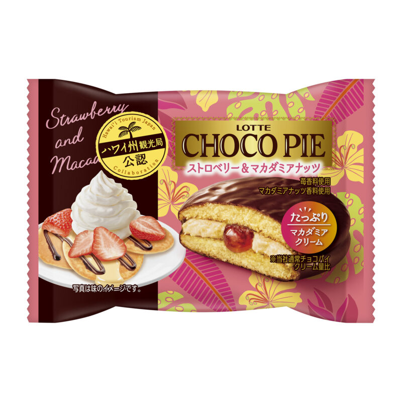 今回の新商品は『チョコパイ<ストロベリー&マカダミアナッツ>個売り』、『チョコパイ<パイナップル&ココナッツ>個売り』、『カスタードケーキ<ブルーベリーパンケーキ>』、『カスタードケーキ<トロピカルフルーツ>個売り』4種類。全て味はハワイ州観光局公認された本格派商品です。