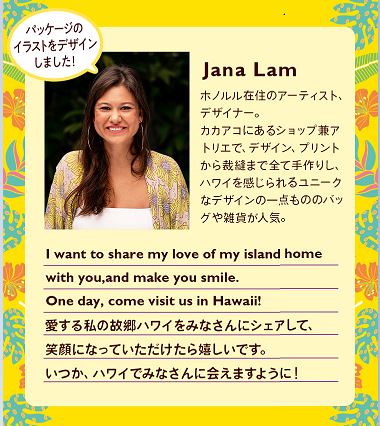 パッケージデザインは夏のハワイを感じるハワイの植物をデザインしており、見た目にも食べた瞬間にもハワイにいるような幸せを感じれます。