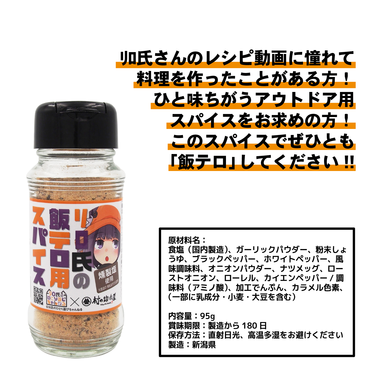 商品名:リロ氏のひとり遊びちゃんねる×村の鍛冶屋 リロ氏の飯テロ用スパイス 95g LIS-001
