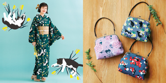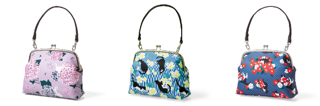 さらに、歴代の猫部オリジナル浴衣で登場したデザインを使用した、がま口バッグも新しく登場です。全部3種類で、和装だけでなく洋装にも合わせやすいデザインです。