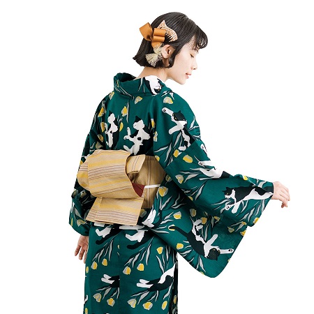 360度どこからでも猫が見える、猫部オリジナルデザインならではの「猫密度」の高い浴衣は、お手持ちの帯と合わせて楽しめます。ハチワレ猫と暮らす方は、愛猫とおそろコーデも楽しめます。