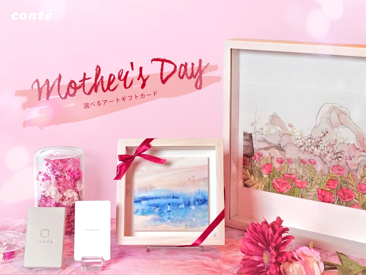 母の日のギフトとして受け取ったお母様が、ご自身で好きなアート作品を選ぶことができる「conte 選べるアートギフトカード」を販売いたします。ご購入の際には、母の日用のラッピングでお渡しいたします。