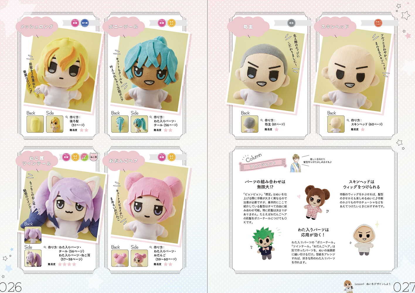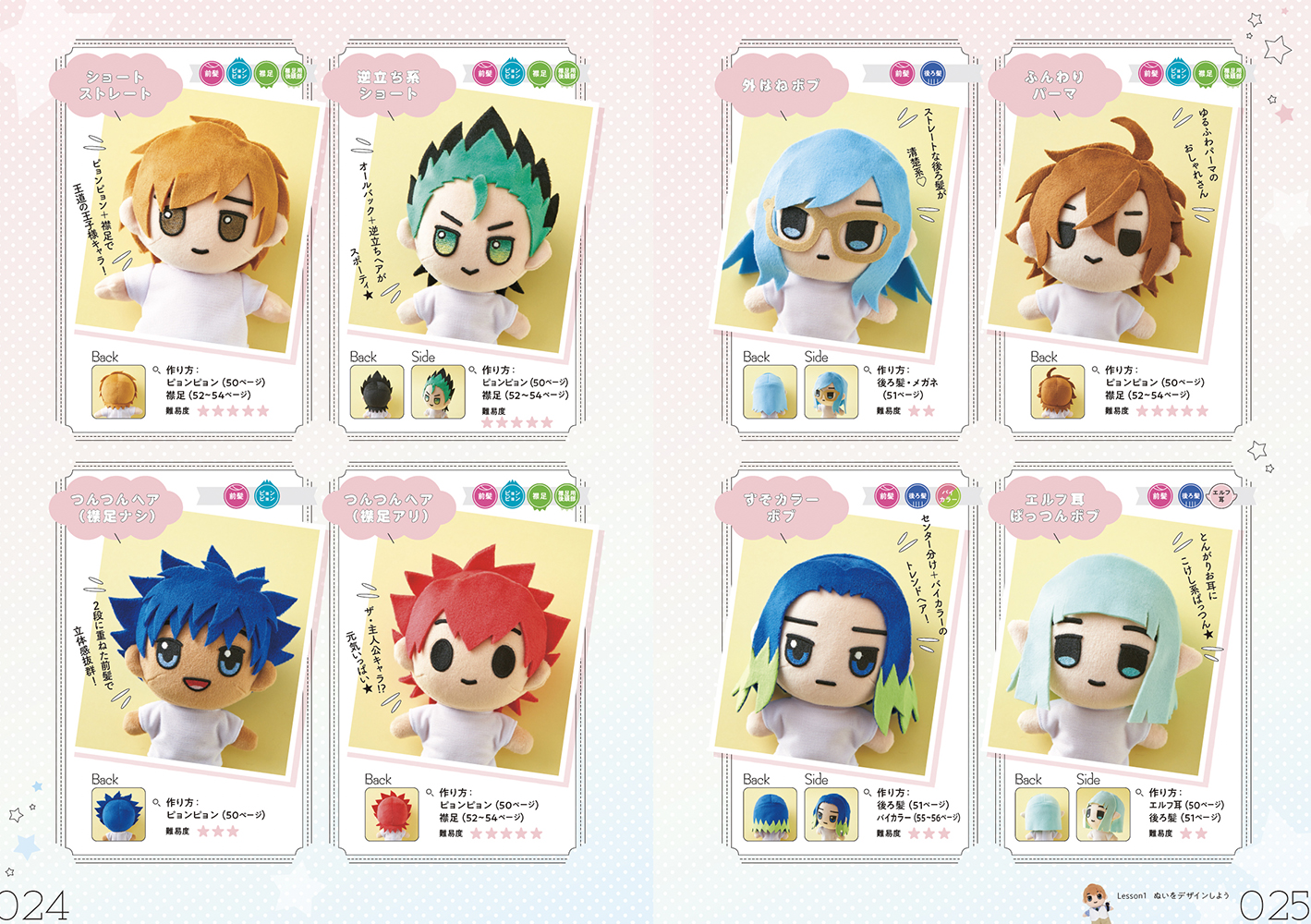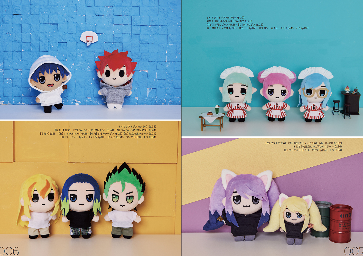 同書は立体で表現するときに難しいの髪型やぬいぐるみのボディや、きせかえできるお洋服など、数多い種類を掲載しておりますので、 きっと皆さんの推しに近いイメージが見つかるはず!