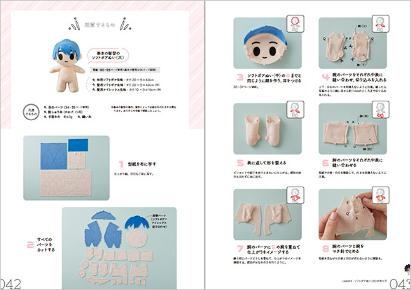 ぬいぐるみパタンナーによる、わかりやすいプロ直伝の解説+豊富なプロセス写真で、はじめてぬいぐるみ作りに挑戦する方も安心です。ぬいぐるみならではの難しい立体構造も、わかりやすいワイプイラスト付きの解説で迷子になりにくい!