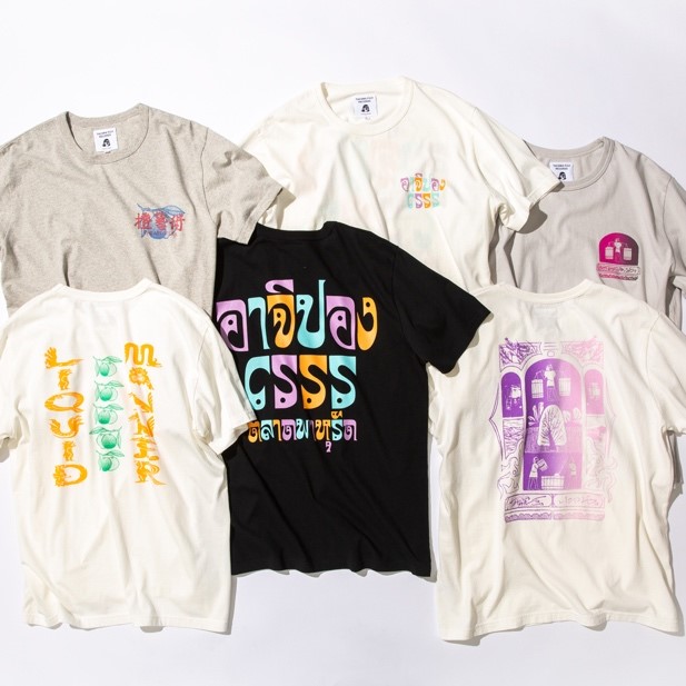 近年はその活動の幅も展開するプロダクトも多岐に渡り、Tシャツのリリースは勿論、実在するミュージシャンや芸術家、アパレルブランドとのコラボレーションからビアバーのTシャツ制作まで、ファッション、カルチャーと「普通の生活」の隙間をボーダーレスに活動中。