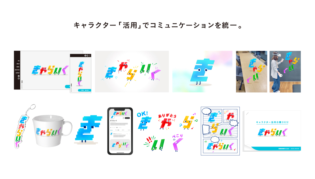 DX化が進み、多様なコミュニケーション手法が用いられるようになってきたマーケティング・プロモーション領域において、オリジナルキャラクター開発を起点に、コミュニケーションを全方位で支援いたします。博報堂プロダクツでは、ビジュアル化(視覚体験化)による新しいマーケティングコミュニケーションの変革を「VX(ビジュアル・トランスフォーメーション)」と位置づけ、「撮影テック」「ライブテック」「エクスペリエンス」「プロダクションDX」「運用・UX」「コンテンツソリューション」「CG・VFX」「AI」「業種別ソリューション」の9つのカテゴリーを軸に「見るを超える体験」を開発・提供しています。「きゃらいく」もこのVXの取り組みのひとつとして展開していくことで、キャラクターを通じて良質な視覚体験を提供し、企業と生活者とのエンゲージメント高めていくとともに、企業のさらなる成長・ブランド価値の向上に寄与してまいります。