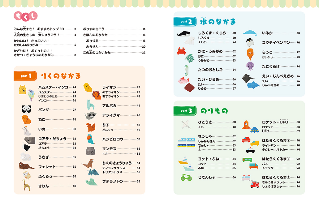 本書では、何百もの作品のなかで、特に人気を集める作品や、新宮先生・スタッフがおすすめしたいおりがみトップ10も紹介します!小さなお子さんも、おりがみ初心者さんも、指先の運動に挑戦したい方も、みんなが楽しめる一冊です。