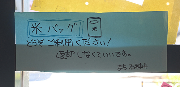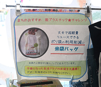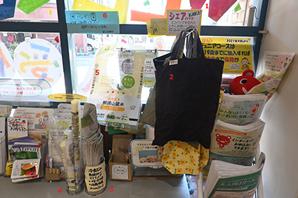 5&6番:お米が入っていたビニール袋は強度バツグンのため、上を開いて持ち手の穴を開ければレジ袋代わりに。お米を食べ終えた組合員が持ち寄って循環させながら使っています。
