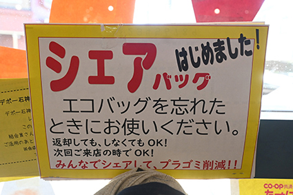 1&2番:ポリ袋は売っていませんが、布製の「シェアバッグ」があります。