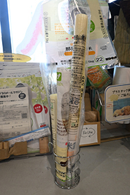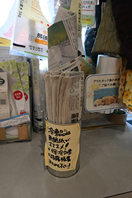 3&4番:古新聞も自由に使えるようにストック。魚などは、ビニール袋に入れるより新聞紙で包んだ方が余分な水分を吸ってくれるので、新鮮な状態で持ち帰れます。
