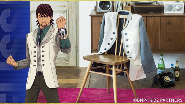 アニメ『TIGER & BUNNY 2』に登場するキャラクター、〈鏑木・T・虎徹〉のジャケットをイメージしたモデルは、虎徹がジャケットと一緒に着用しているジレの要素にまでこだわって作られており、まるで虎徹が今さっき脱いでいすに掛けていったかのようなたたずまい。