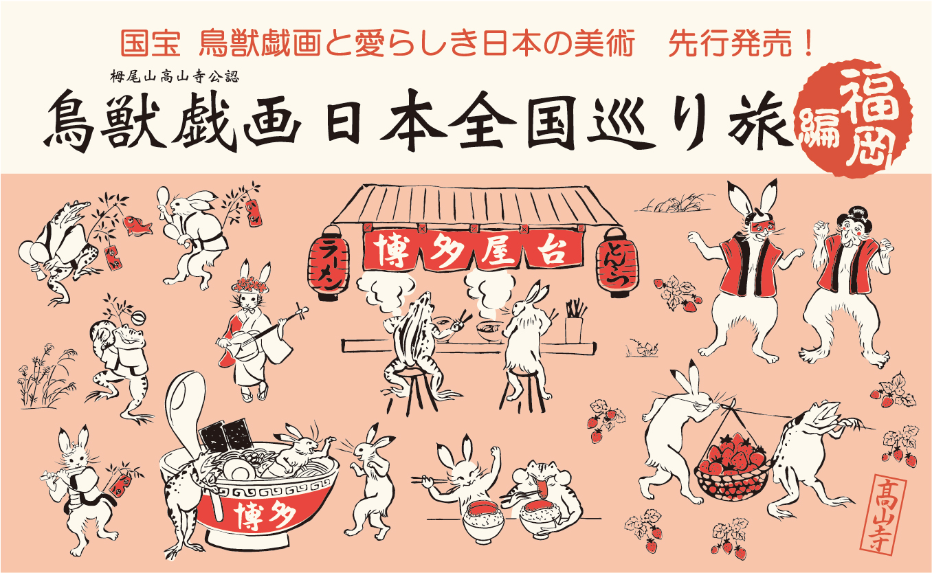 人気の『鳥獣戯画 日本全国巡り旅』シリーズ福岡編が登場。2022年9月3日(土)から10月16日(日)まで福岡市美術館で開催される『国宝 鳥獣戯画と愛らしき日本の美術』の特別展で先行販売される。