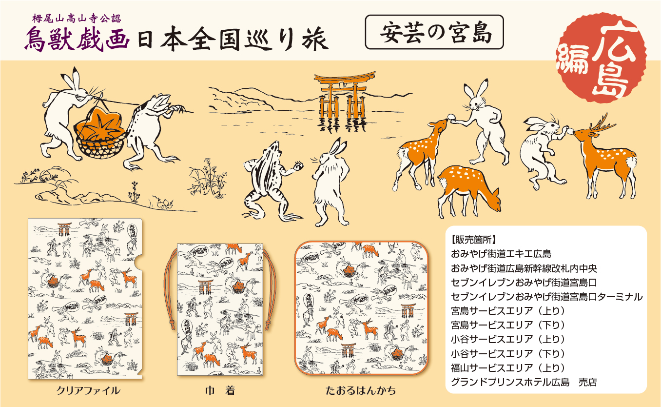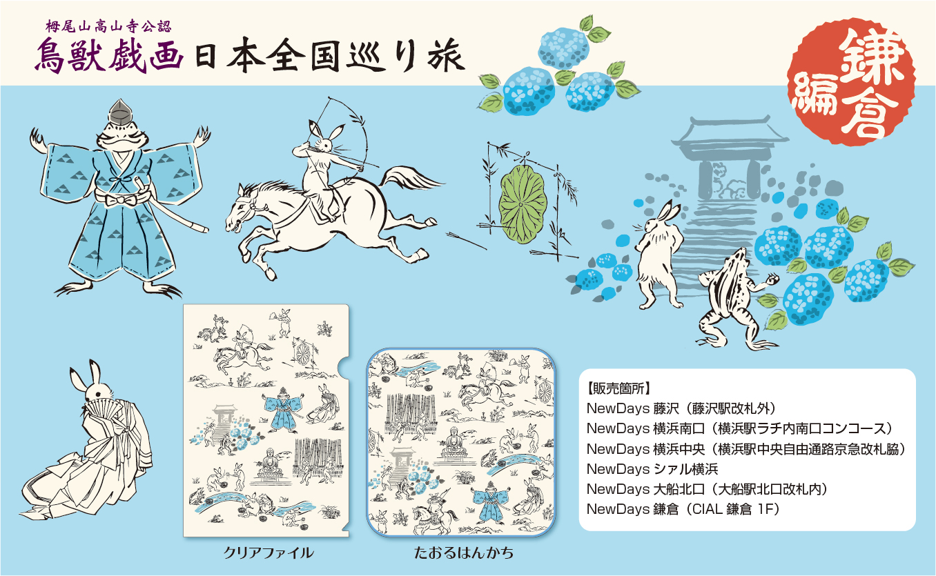 『鳥獣戯画 日本全国巡り旅』グッズは、2021年10月より、第1弾の小田原編が発売され以来話題になり、第2弾の京都編、群馬編続いて、岡山編、広島編、鎌倉編も現在好評発売中です!