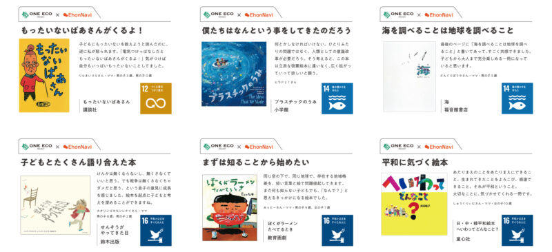 「エコ育絵本特集」は、子どもたちにとって身近な存在である絵本を通じて、親子が一緒にエコについて考えるきっかけづくりを行いたいという思いから、日販が取り組む書店店頭発のエコ活動「ONE ECO PROJECT」と「絵本ナビ」がコラボレーションし、実現した企画です。「親子で共感し学ぶことができる」「エコ活動のきっかけになる」ことを目的として、持続可能な開発目標(SDGs:Sustainable Development Goals)をテーマに絵本30作品を選書し、特設サイトで紹介しています。