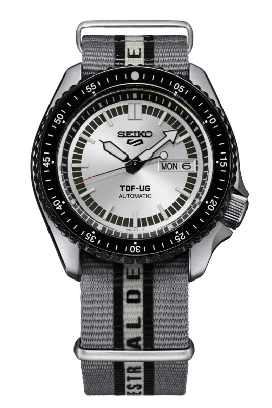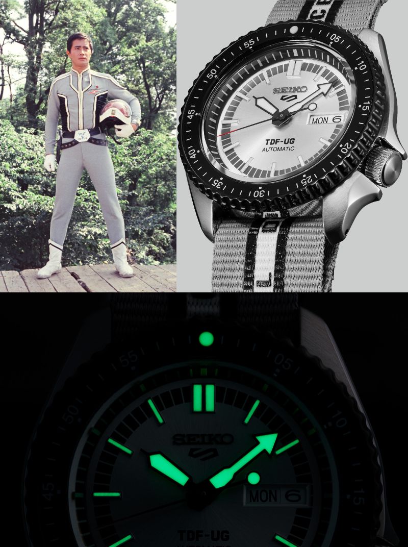初代5スポーツをオマージュし、当時のベゼル表示板とダイヤルのデザインを現代的にアレンジした特別なモデルです。また、『ウルトラセブン』に登場するウルトラ警備隊を示す「Terrestrial Defense Force Ultra Guard」、通称「TDF-UG」の文字を6時位置に配置しました。
