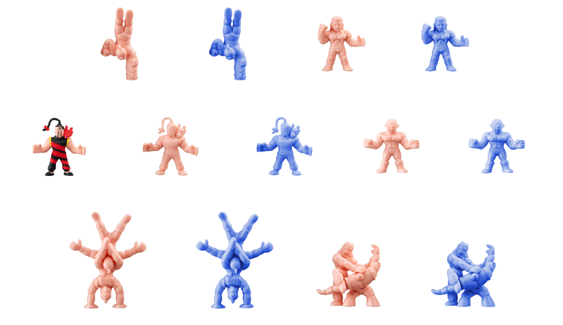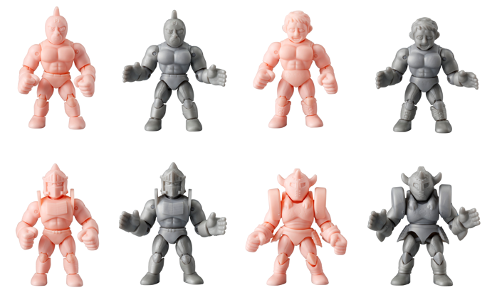 「キンケシ(TM)」のエクストラシリーズとなる「フルアクション」シリーズは、「キンケシ(TM)」シリーズ史上初の組 み立て式となり、全身の 14 カ所が可動し、 “超人同士の技の掛け合い”や“好きなポーズ・名シーンの再現”がで きます。今回の「キンケシフルアクションスペシャル 01」では、「キン肉マン」「テリーマン」「ロビンマスク」「悪魔将軍」の計 4 体のラインアップを、各 2 カラー(ペールオレンジ、シルバー)展開で発売します。