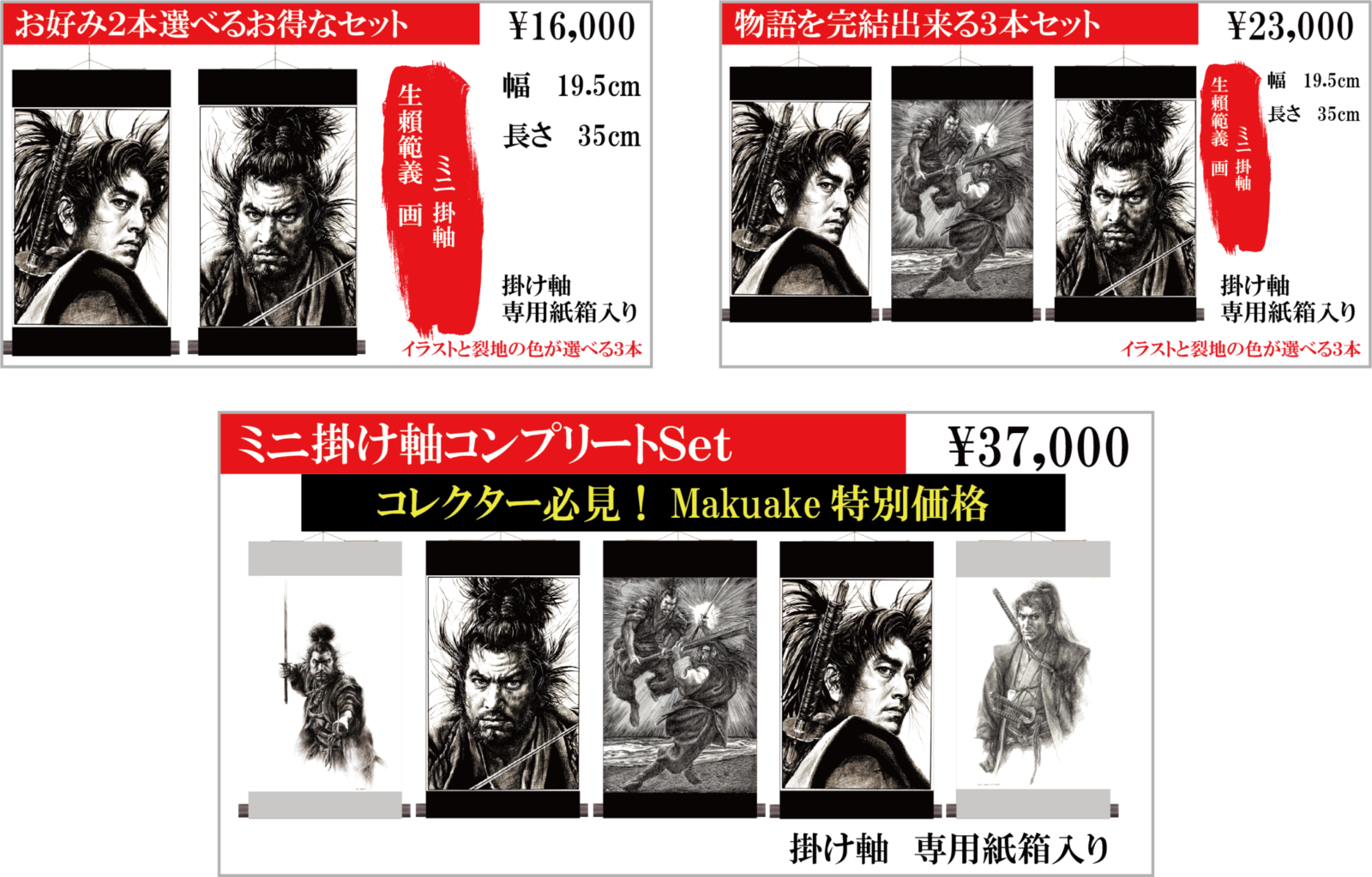 SNSで要望が寄せられた本格的な作りを保ちつつミニ化を図ったミニ掛け軸も同時発売です。