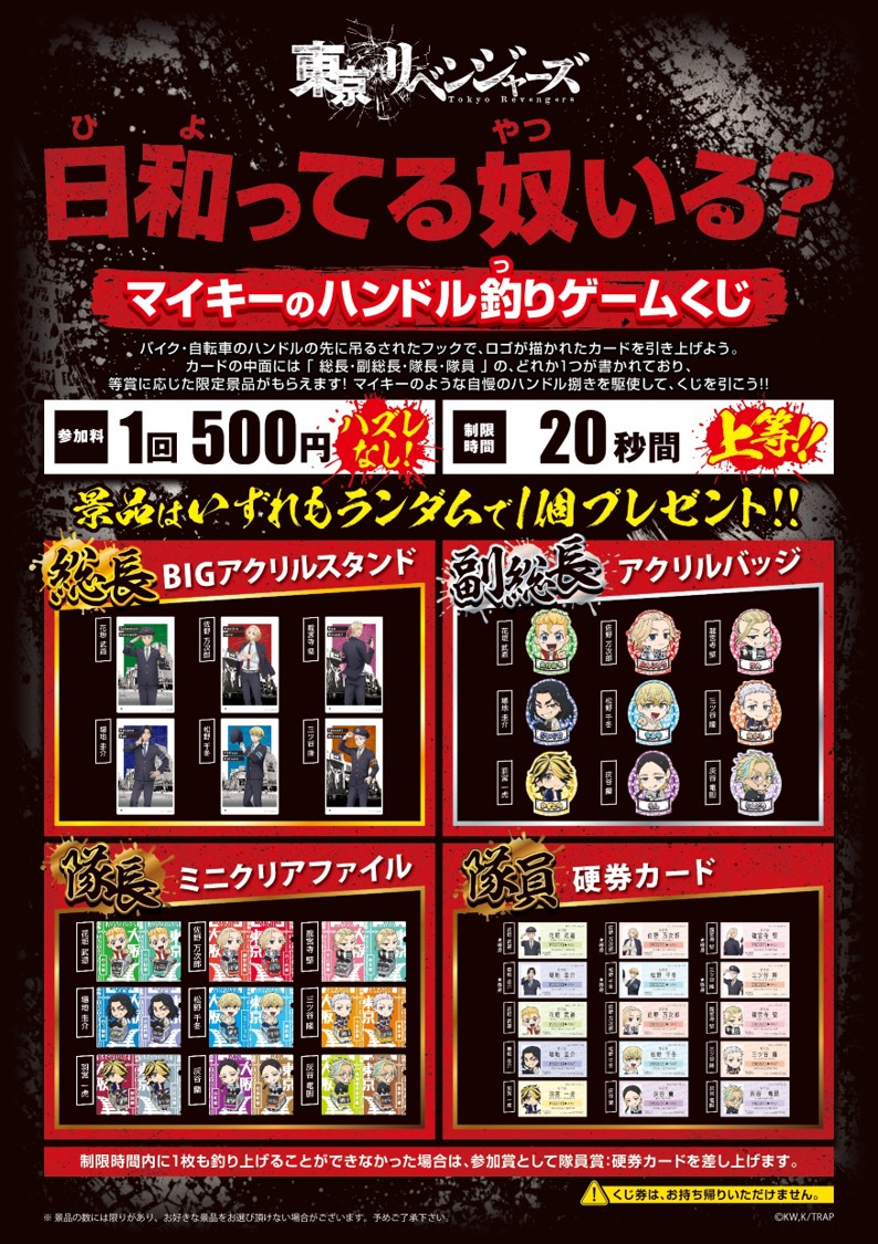 『東阪リベンジャーズ』仕様に装飾した店内では、コラボオリジナルグッズやその他関連グッズの販売、景品があたる縁日ゲームを展開いたします!