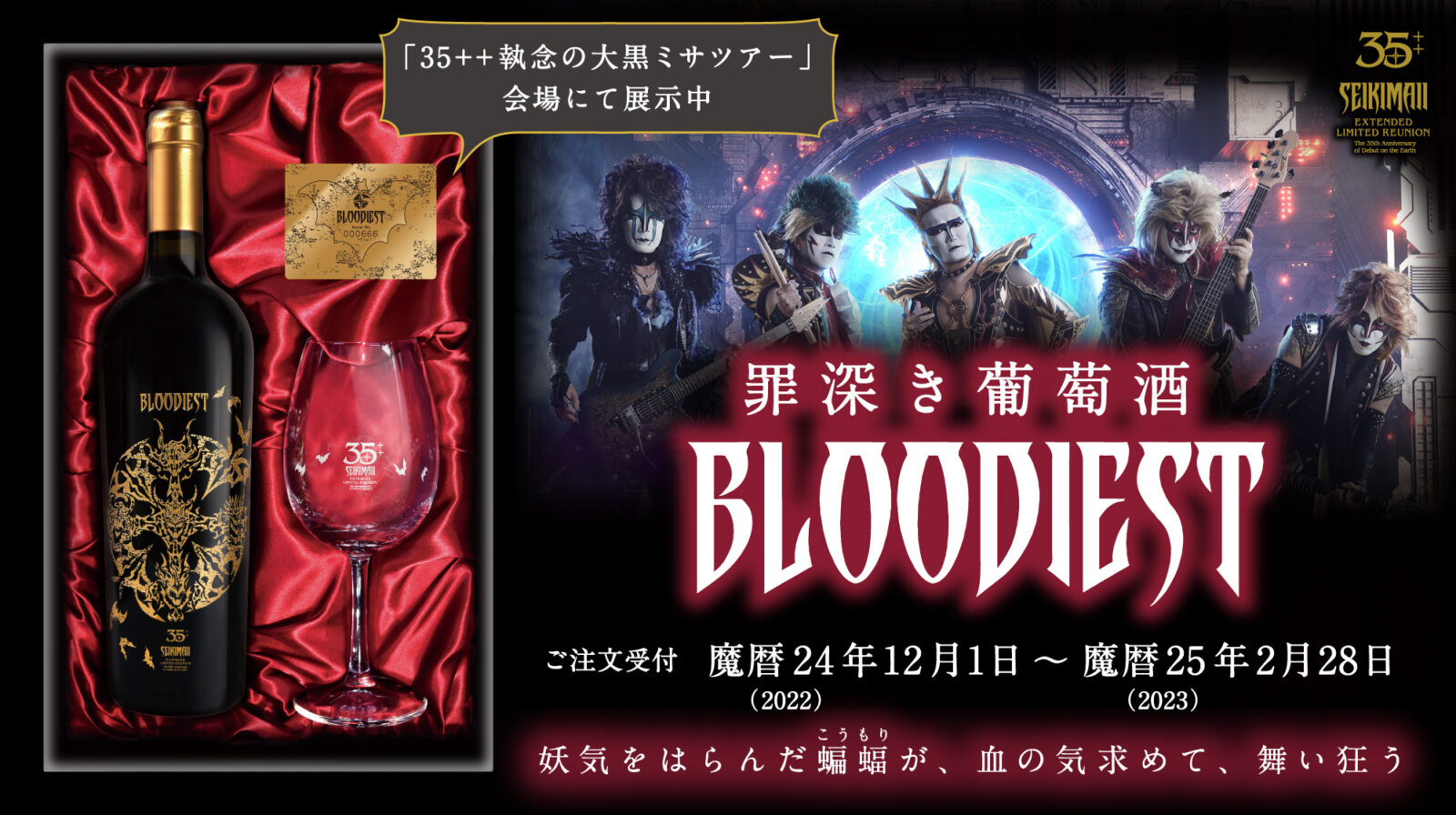 そんな「聖飢魔II」の地球デビュー35周年を記念した大黒ミサツアーの追加公演である、聖飢魔II期間再延長再集結「35++執念の大黒ミサツアー」の開催を記念して[罪深き葡萄酒 BLOODIEST]が発売されます!