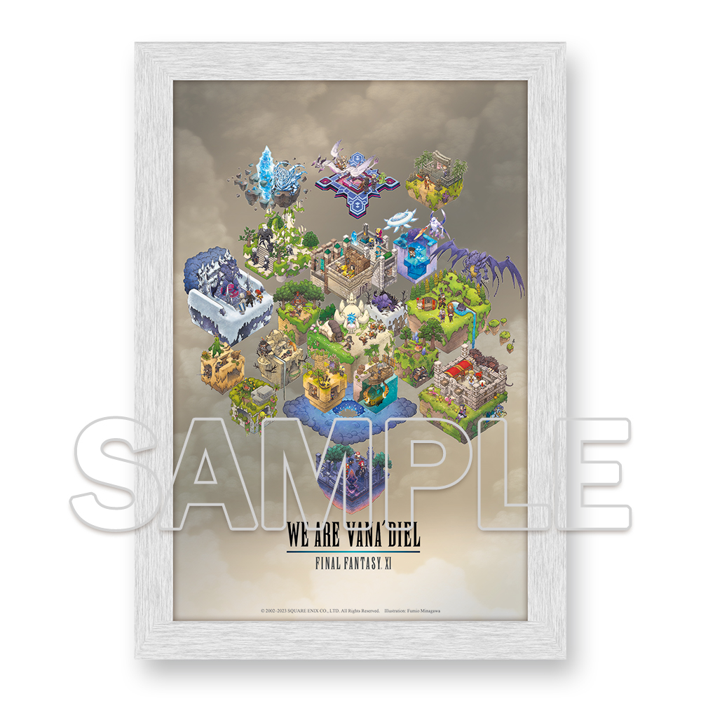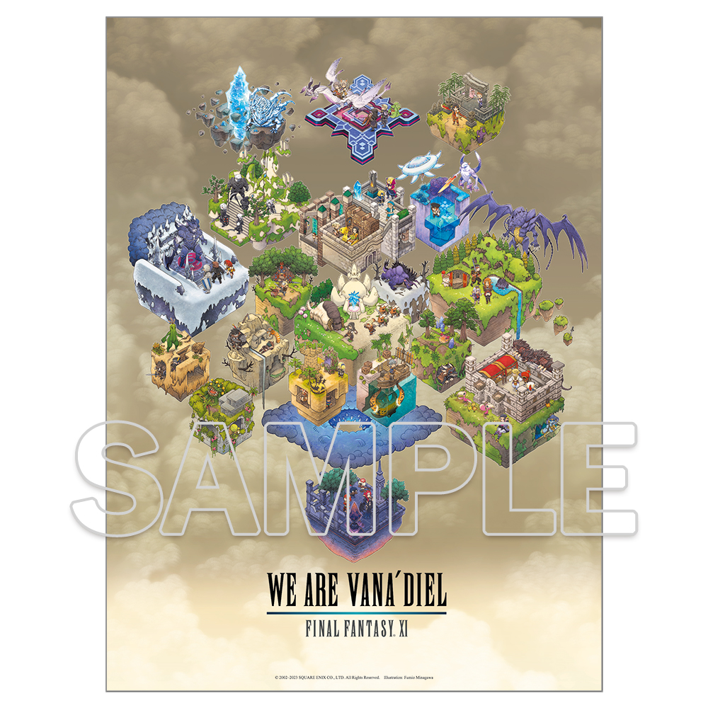 そのほか、イラストレーター皆川史生氏がヴァナ・ディールの「場所」や「シーン」をミニチュアテイストで描いた「VANARIUM」のイラストを使用したアクリルコースタースタンドやB1サイズのファブリックポスター、2種類のパブミラーなど盛りだくさんの内容になっています。
