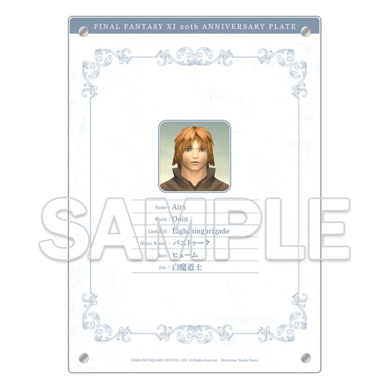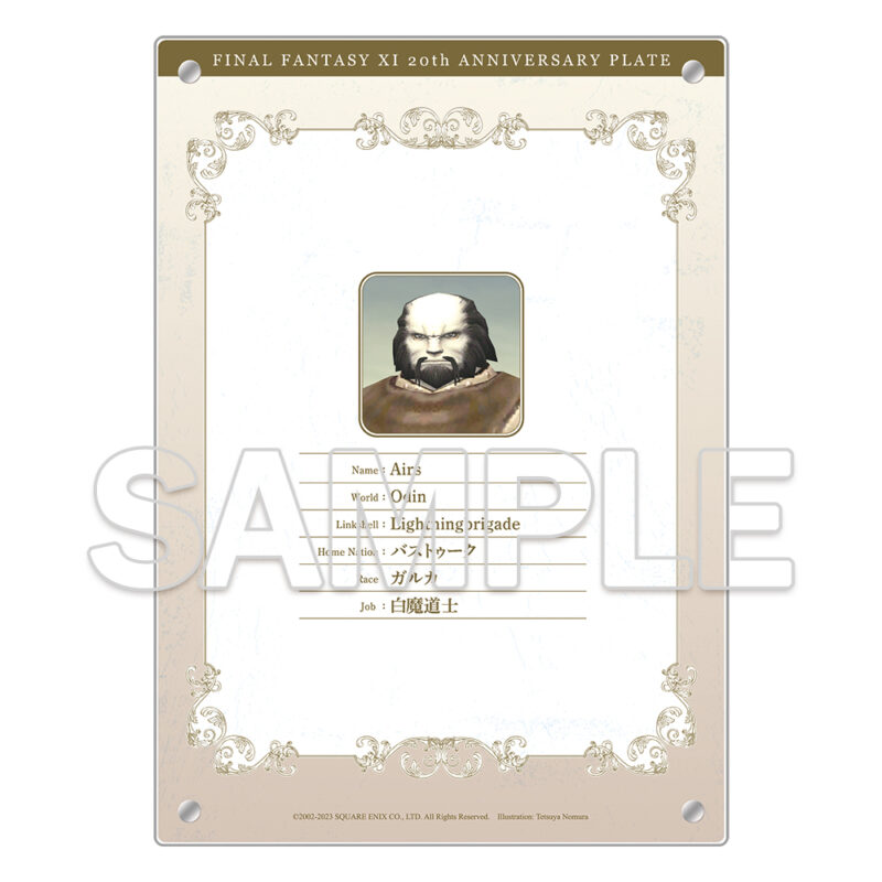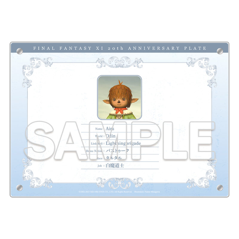 3種類の好きなイラストと自分の使用キャラクターの顔グラフィックの組み合わせを選んで購入することで、専用サイトでName(キャラクター名)、World(所属ワールド)、Linkshell(所属リンクシェル)、Home Nation(国)、Race(種族)、Job(メインジョブ)などのデータをプレートの裏面に刻むことができます。まさにあなただけの世界で唯一のグッズとなります。