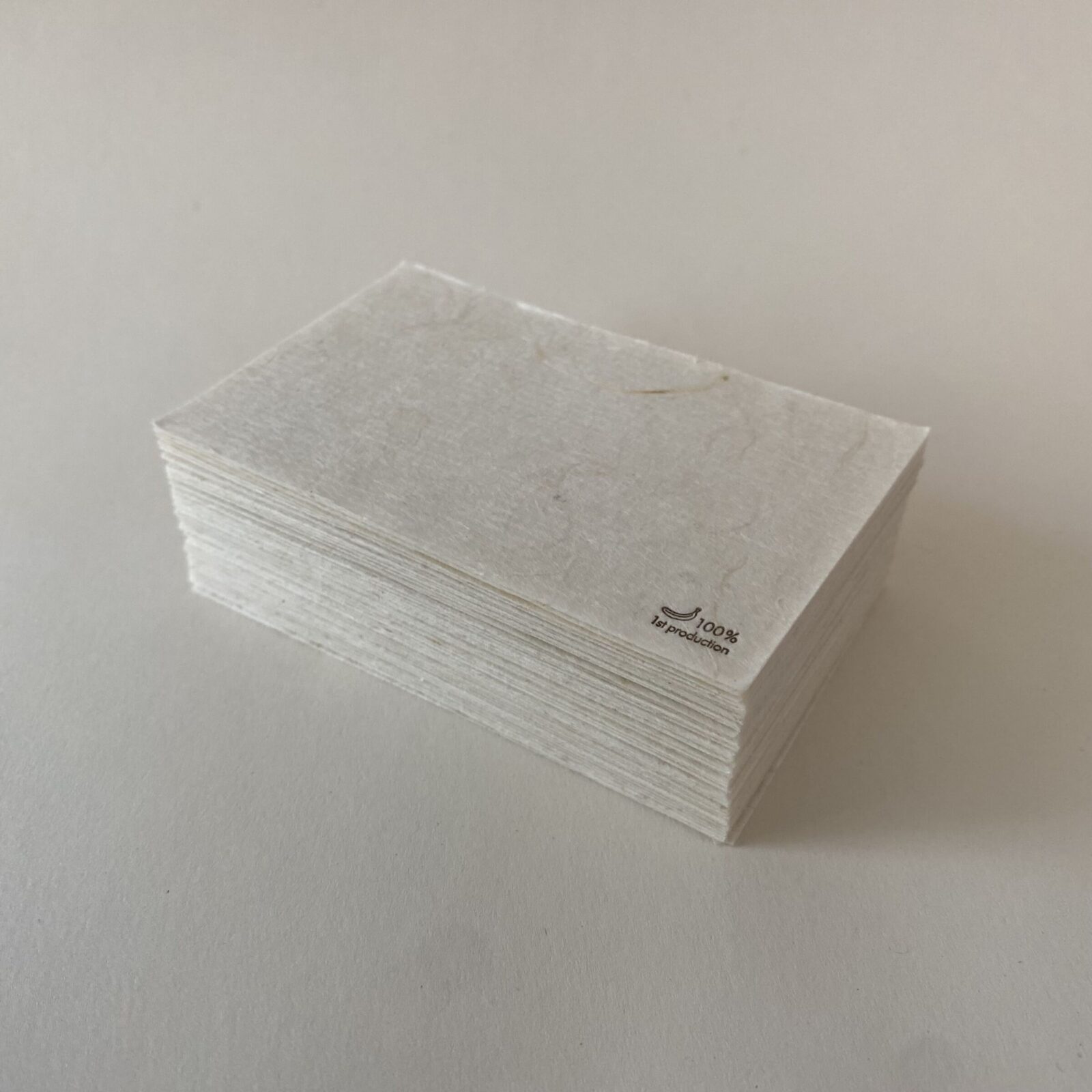 独特の手触り、温かみのある風合い、廃棄されるはずであったバナナの茎が原料である事から、「SDGsに参加している」「サステナブル企業です」等名刺に印刷した際にも説得力を加えられる素材の紙です。