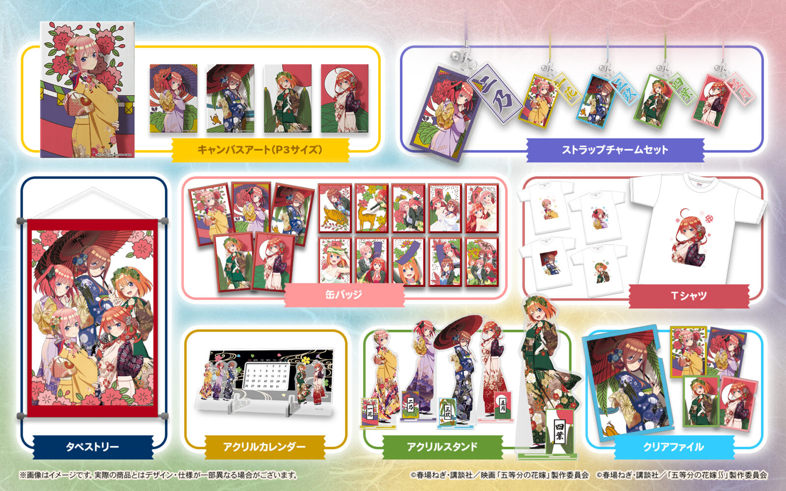 「五等分の花嫁」花札シリーズグッズを3,000円(税込)以上ご購入ごとに、チェキ風ブロマイド(全5種)をランダムで1枚お渡しとなります。