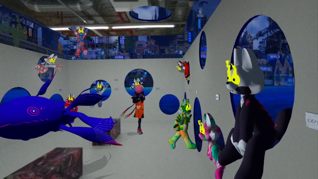 MRでイラストレーター「前田麦」さんデザインのキャラクター「EOF_Wolf」との様々なクリエイターコラボ作品が等身大で展示されています。