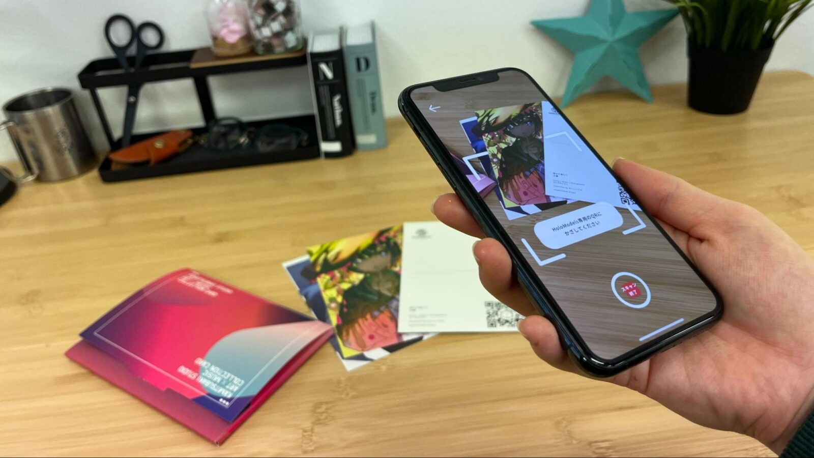 Gugenkaが提供するスマートフォンARアプリ「HoloModels」を作品にかざすことで、アニメーションや音で拡張されたAR演出を楽しむことができます。