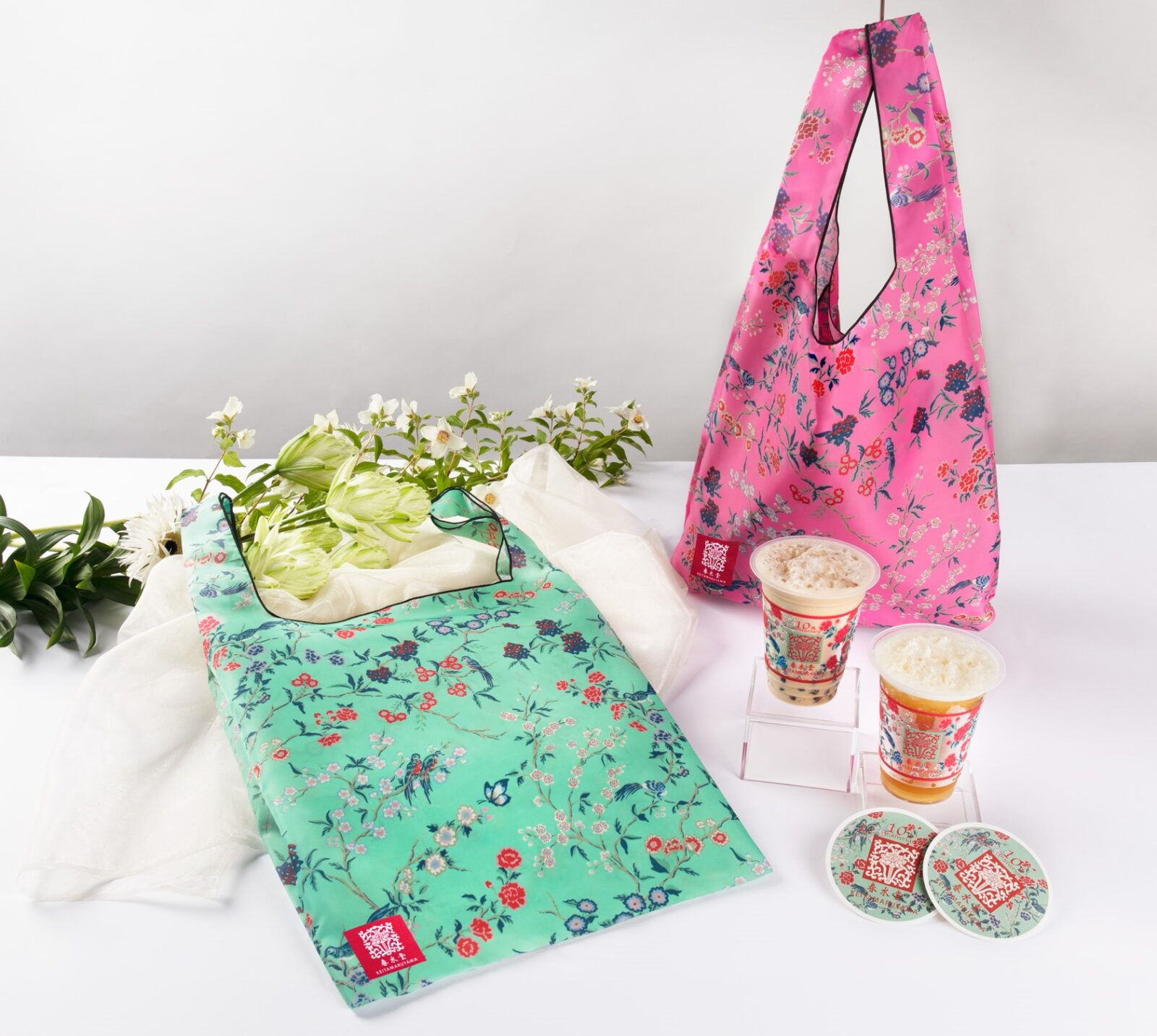 2017年に春水堂の制服デザインも手がけた丸山敬太氏による、オリエンタルテイストの「エコバック」がミントグリーン、ピンクの2色で展開されます!