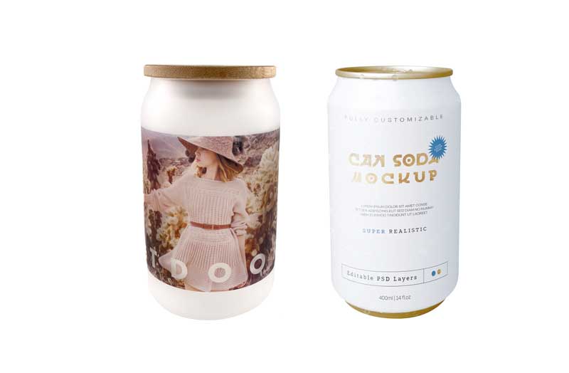 △お気に入りの写真やイラストでオリジナル缶型グラスをお作り頂けます。