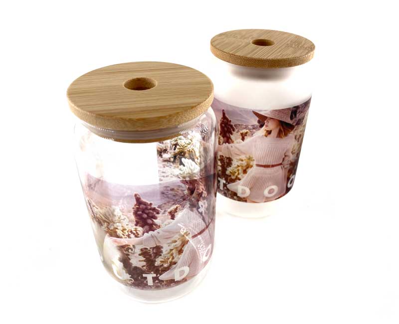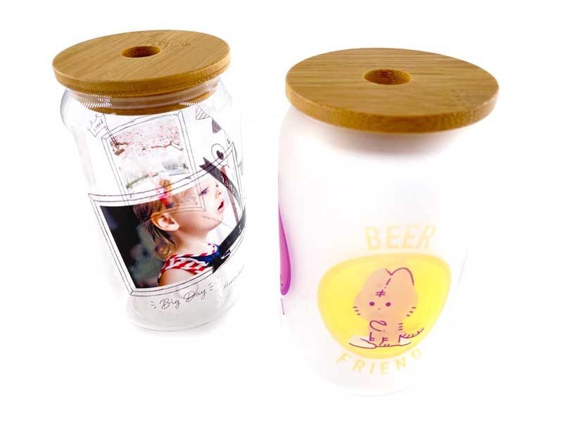 缶型グラスは、透明と半透明のすりガラスのようなフロスト加工マグ、2種からお選びいただけます。それぞれ特徴のある仕上がりとなります。お好みのタイプをお選びください。
