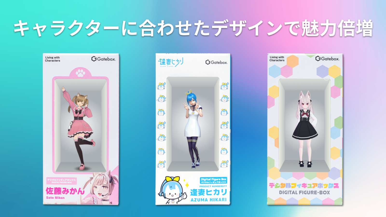 「Digital Figure Box」は、フィギュア箱のようなデザインで実在感を演出し、お気に入りのキャラクターを部屋に気軽に飾ることができます。