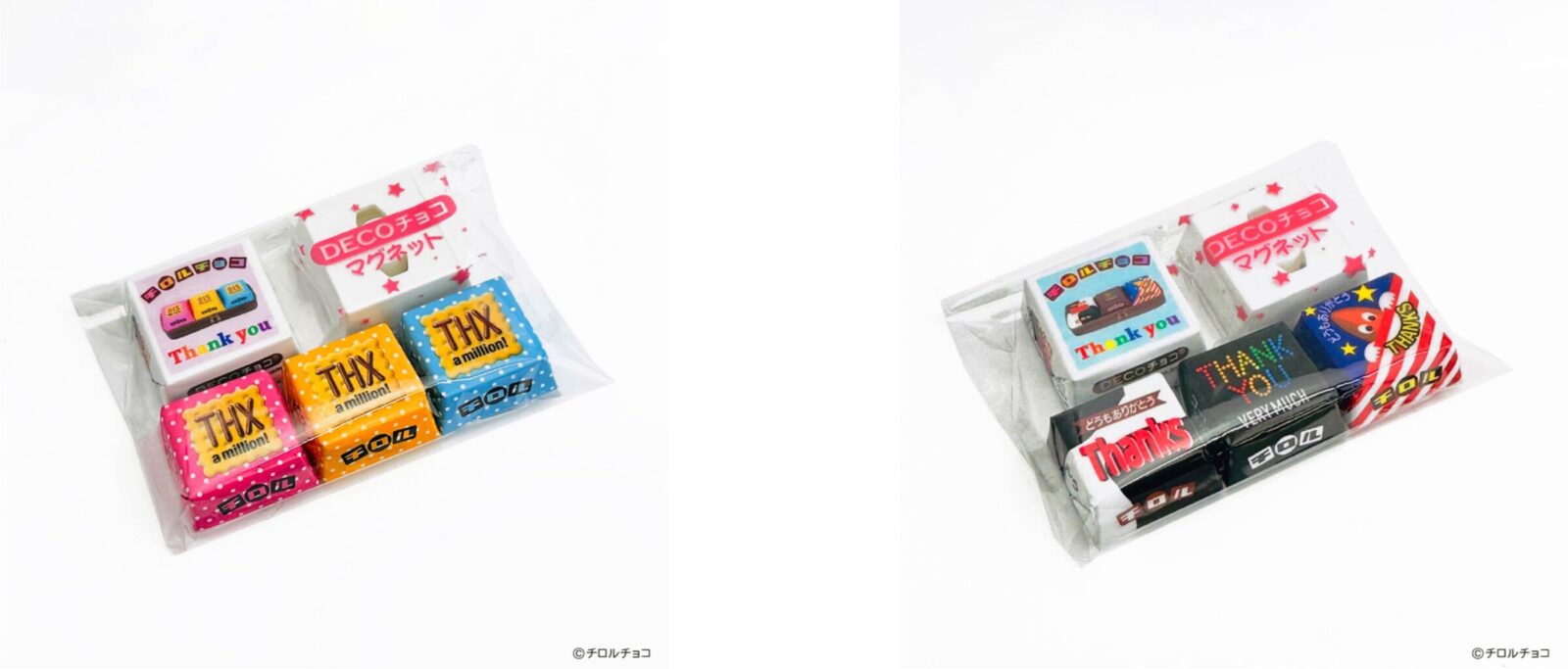 さらにShop チロルチョコ限定で、7月7日(金)11:00より、チロルチョコペンポーチをご購入いただいた先着30名(各柄15名ずつ)のお客様に、ペンポーチの柄と同じフレーバーの120周年記念デザインのチロルチョコ(3個)と、チロルチョコペンポーチの発売を記念した特別デザインのDECOチョコ、DECOチョコの包装紙をマグネットにできる「DECOチョコマグネット」をセットでプレゼント!