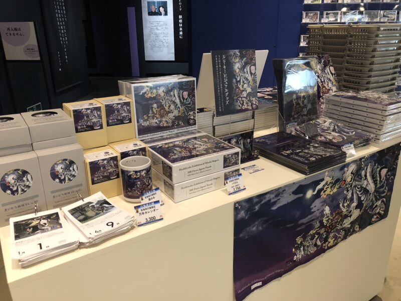 会場内の特設ショップでは、ここでしか買えない展覧会限定グッズが盛りだくさん!メインビジュアルを使用したクリアファイルやTシャツ、ポストカードなども勢ぞろい。