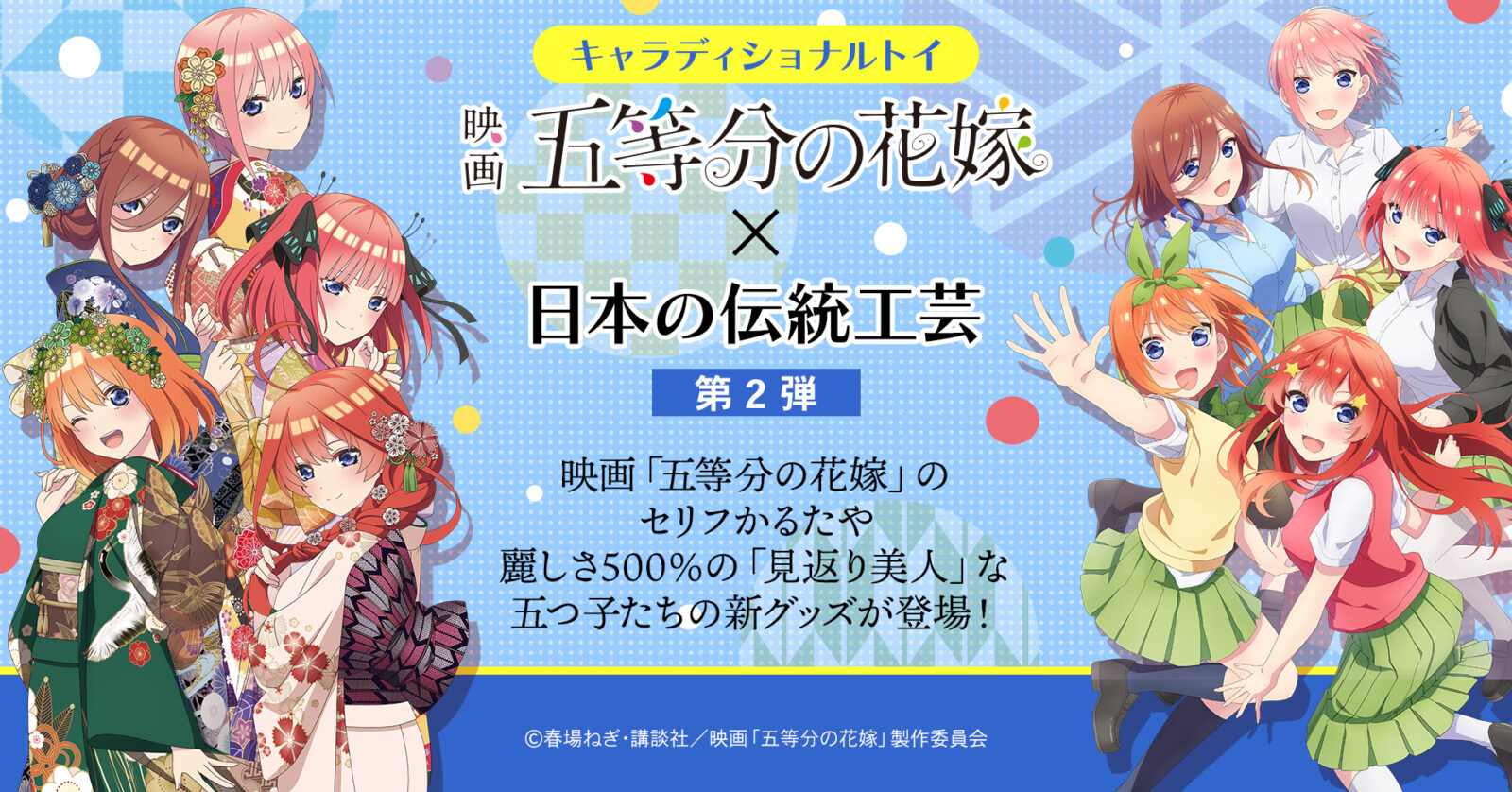 そんな『五等分の花嫁』が「キャラクター×日本の伝統」をテーマにしたブランド「キャラディショナルトイ」とコラボしたグッズの第2弾を発売します!