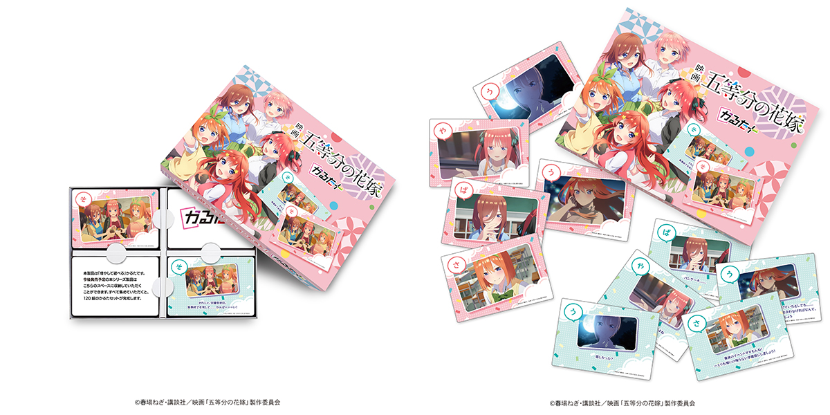 さらに、映画「五等分の花嫁」ストーリー内のセリフと場面写の数々を楽しめるかるた「かるたぷらす」も同時発売されます。