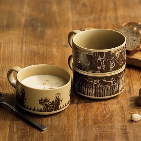 縄文土器の凹凸紋様を細部まで再現されたアイテムたちは、古の雰囲気を感じながらも、日常使いがしやすいよう利便性もしっかり考慮されたデザインとなっています。