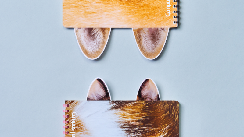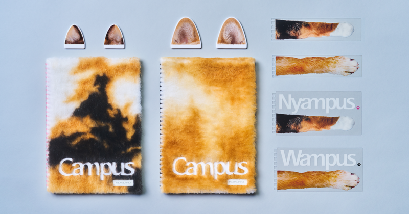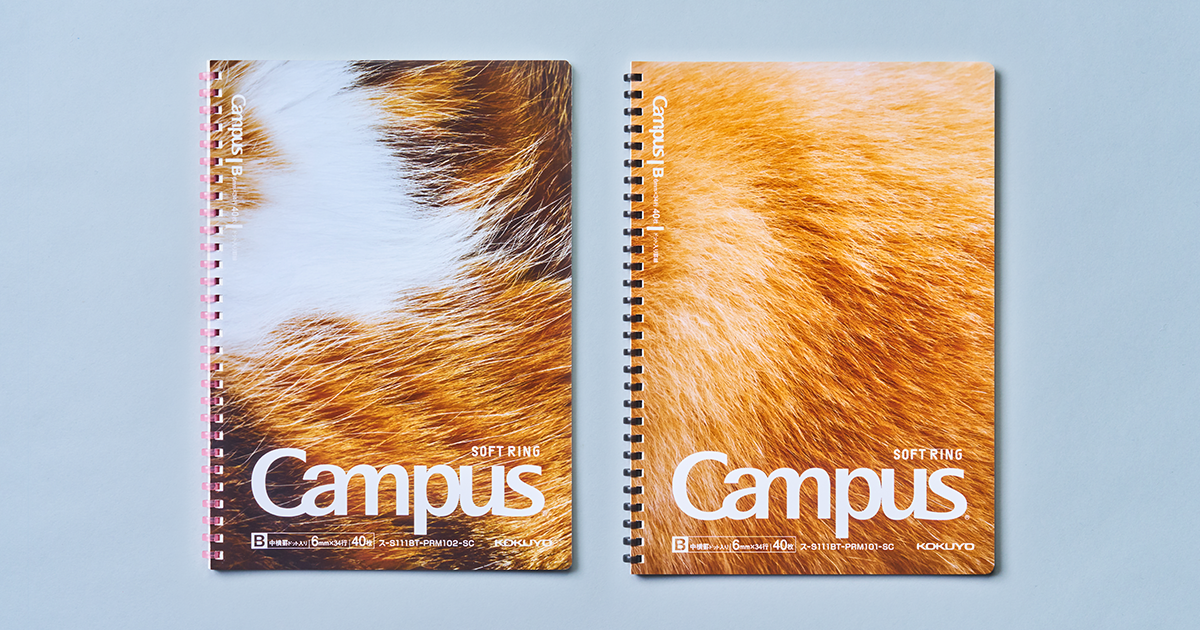 「キャンパス ソフトリングノート」の特徴であるぷにぷにとしたリング部分を犬や猫の肉球に見立て、表紙は柴犬・三毛猫の毛並みをリアルに再現したモフモフな表紙になっています。