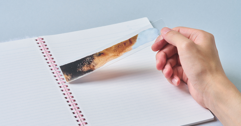 リング部分に取り付けられる犬猫の手アタッチメントは、しおりの代わりや暗記をする際の目隠しとして、文字通り「猫の手を借り」ながら活用することができます。