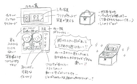 部員が持っているぬいの大きさも参考にして、これくらいのサイズのぬいが2つ入るサイズに設定しています。